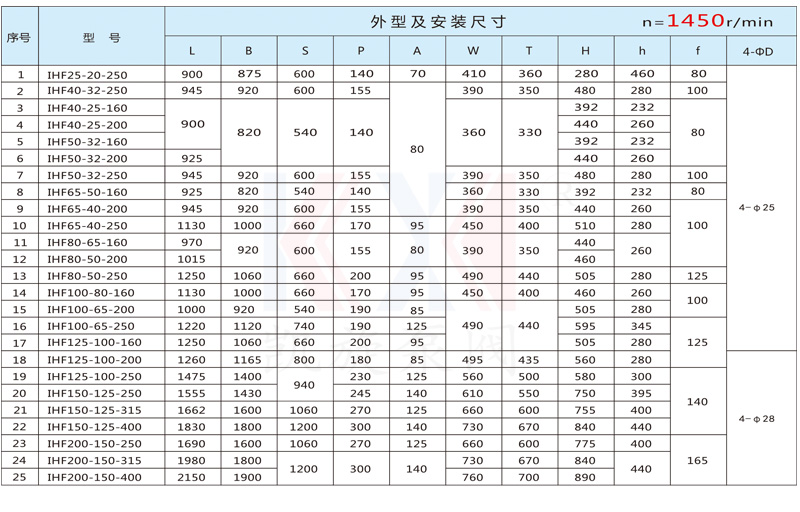 IHF卸酸泵,泵體采用金屬外殼內(nèi)襯氟塑料(F46/PFA),泵蓋、葉輪均用金屬嵌件外包氟塑料(F46/PFA)整體燒結(jié)壓制而成,軸封采用外裝式波紋管機械密封,靜環(huán)選用氧化鋁陶瓷(或碳化硅),動環(huán)采用四氟填充材料,耐腐耐磨密封性好。泵的進出口均采用鑄鋼體加固,以增強了泵的耐壓性。 該泵具有耐腐、耐磨、耐高溫、不老化,機械強度高、運轉(zhuǎn)平穩(wěn)、結(jié)構(gòu)先進合理、密封性能可靠、拆卸檢修方便、使用壽命長等優(yōu)點。適用于-20℃~120℃溫度條件下輸送任意濃度的硫酸、鹽酸、氫氟酸、硝酸、王水等強酸強腐蝕介質(zhì)而不受損。