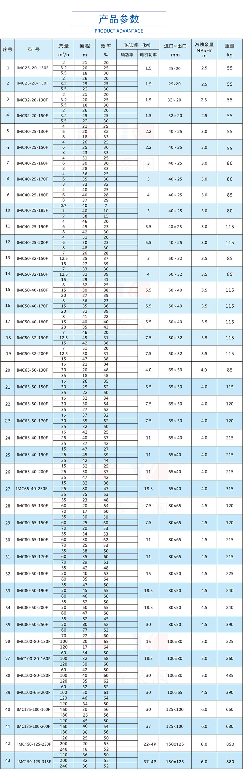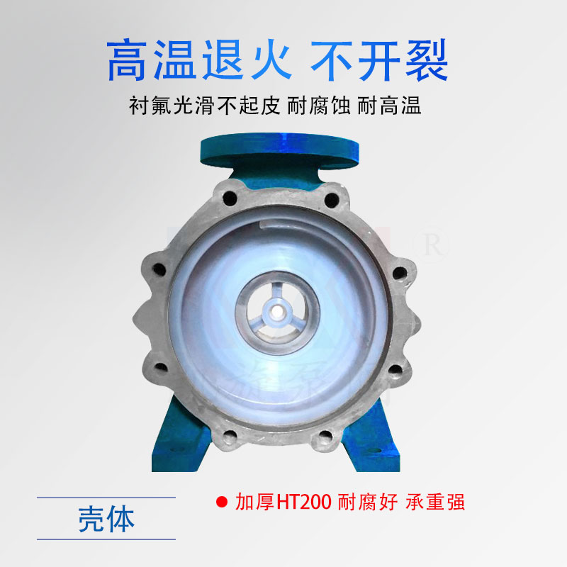 IMC氟塑料磁力泵,利用內(nèi)外永磁體傳動,實(shí)現(xiàn)扭矩?zé)o接觸傳遞,當(dāng)電動機(jī)帶動外轉(zhuǎn)子總成旋轉(zhuǎn)時,通過磁場的作用磁力線穿過隔離套帶動內(nèi)轉(zhuǎn)子總成和葉輪同步旋轉(zhuǎn),隔離套將介質(zhì)完全密封,從而達(dá)到無泄漏輸送介質(zhì)的目的。過流部件采用氟塑料及高純度碳化硅制成,具有良好的耐腐蝕性和密封性,可輸送甲醇、乙醇、甲苯、氯苯、苯酚、乙醚等有機(jī)溶劑和易燃易爆揮發(fā)性強(qiáng)腐蝕性強(qiáng)的介質(zhì)。