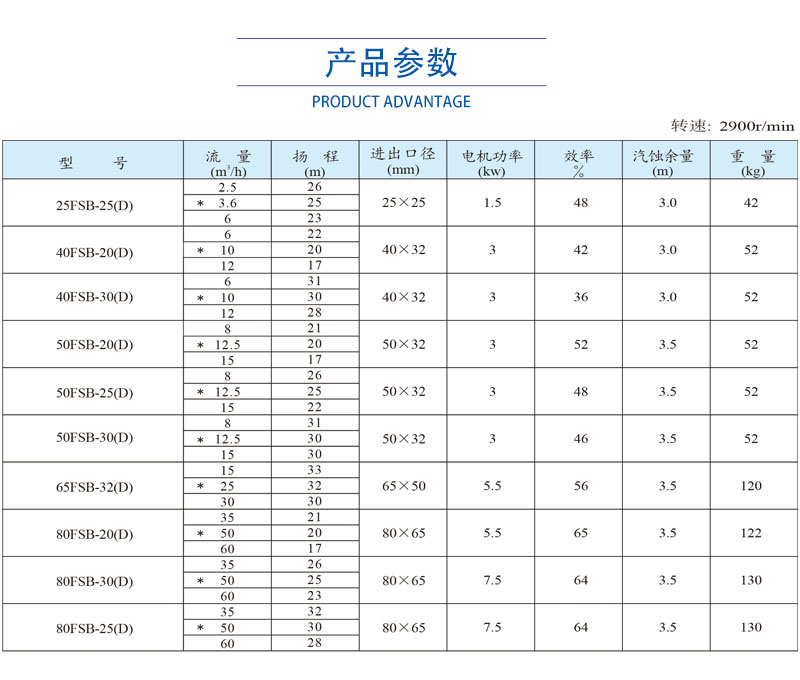 FSB(D)型離心泵,過流部件全部采用氟塑料合金制造,結構緊湊,操作簡單,價格低廉。且與FSB(L)型離心泵泵殼、葉輪、機械密封均可互換使用,適用于石油、化工、制藥、農藥、酸洗、染料、油漆、冶煉、造紙、電鍍、食品等行業耐腐蝕性液體輸送。FSB(D)型氟塑料合金離心泵采用外裝式四氟波紋管機械密封,擁有多層保護,延長了機封使用壽命,對于輸送含雜質顆粒介質時,可配用無冷卻水單端面硬對硬(碳化硅對碳化硅)機械密封,所以用戶選型時需考慮到介質中的固體含量